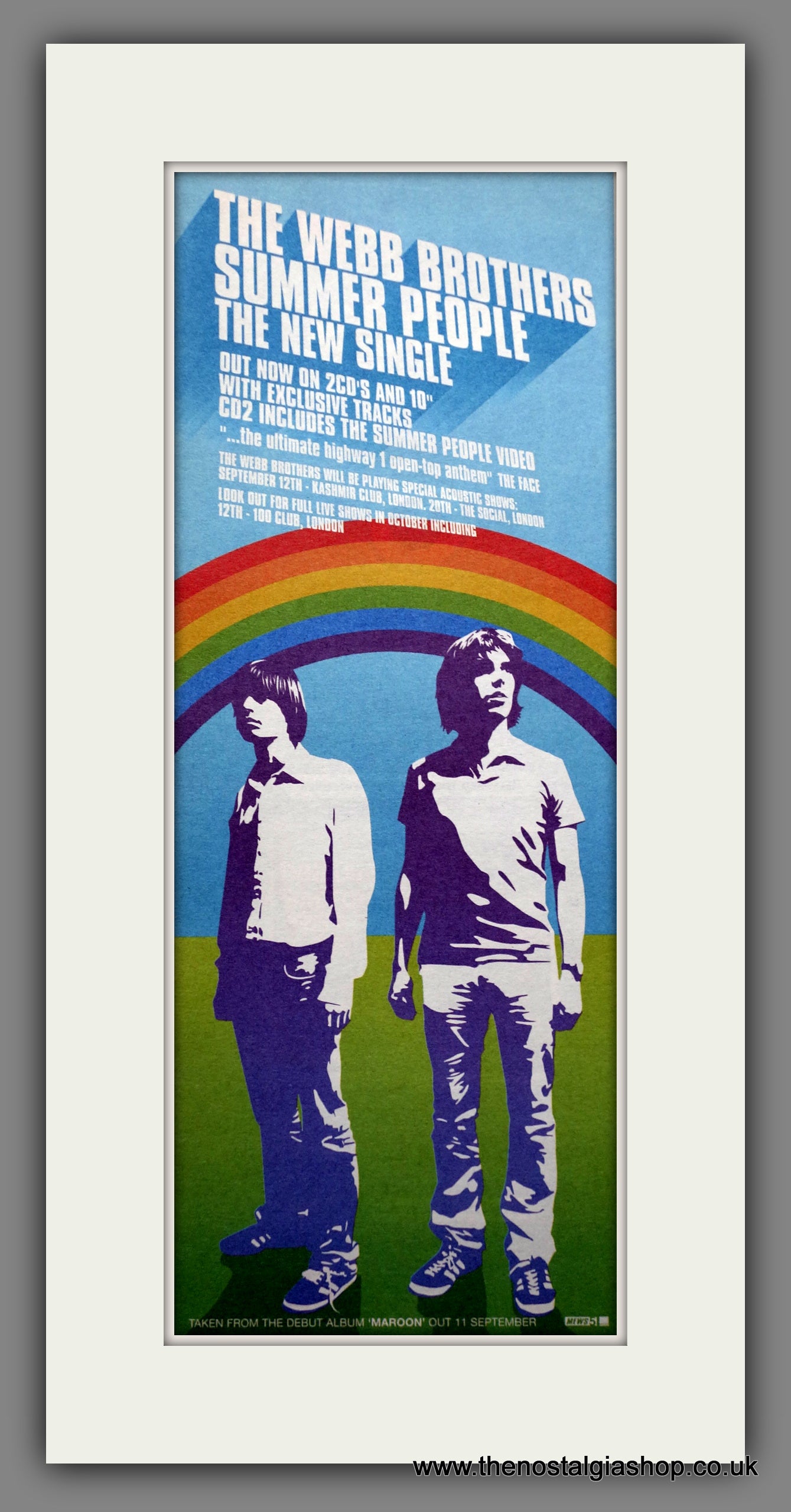 The Webb Brothers Summer People. Vintage Advert. Original advert 2000. Presented and Supplied in cream bevel cut mount with backing card and display bag. Ready to fit in 20 x 10 inch frame. All our adverts, unless clearly stated are Originals from the date shown. They make excellent pieces of wall art and stunning gifts. Many are rare and hard to find and once sold, may not be replaced. Remember you are buying a piece of history. Website watermark is not on original.