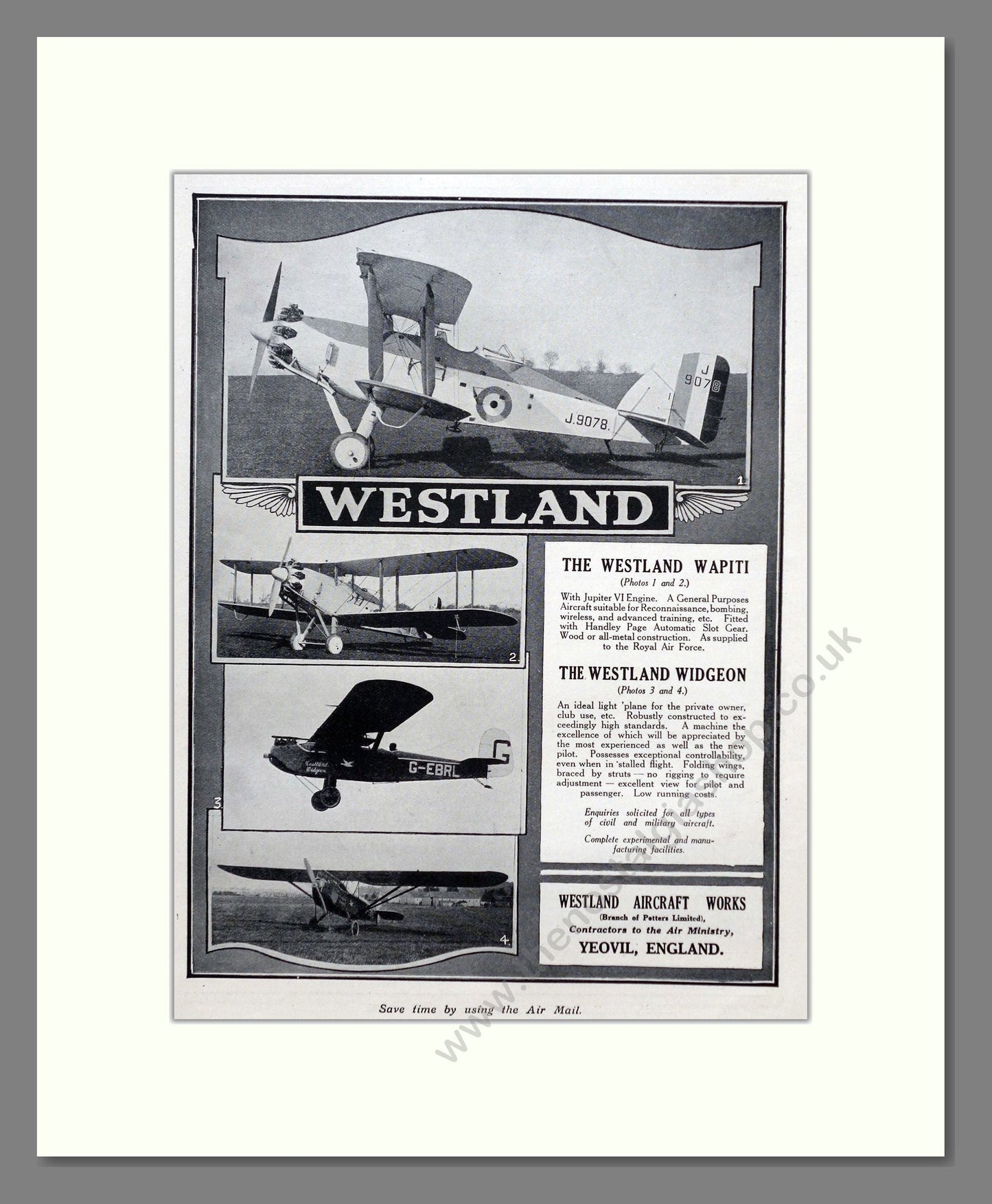 Westland - Wapiti / Widgeon. Vintage Advert 1928 (ref AD62990)