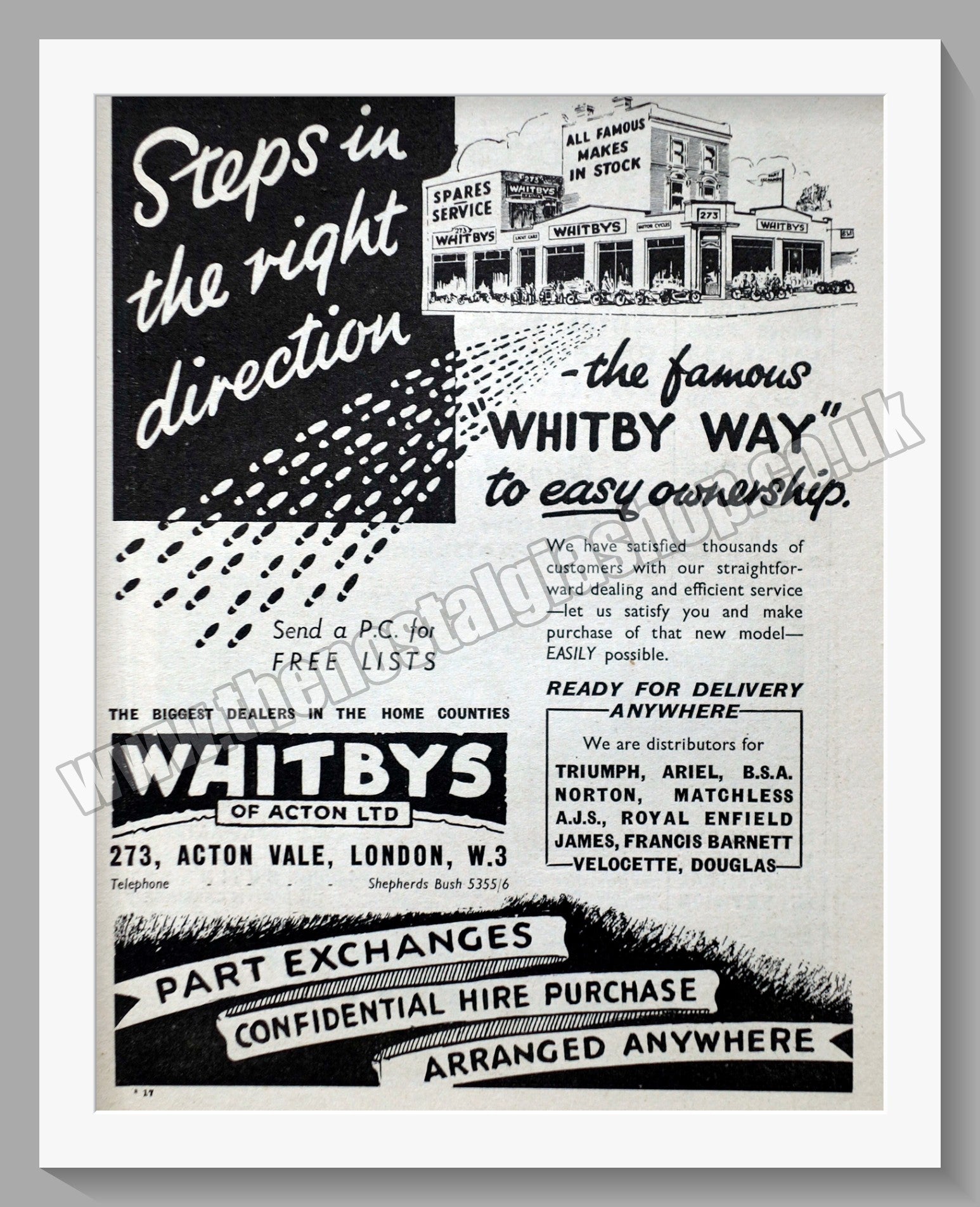 Whitbys Of Acton Motorcycle Dealer. Original Advert 1948 (ref AD57465)