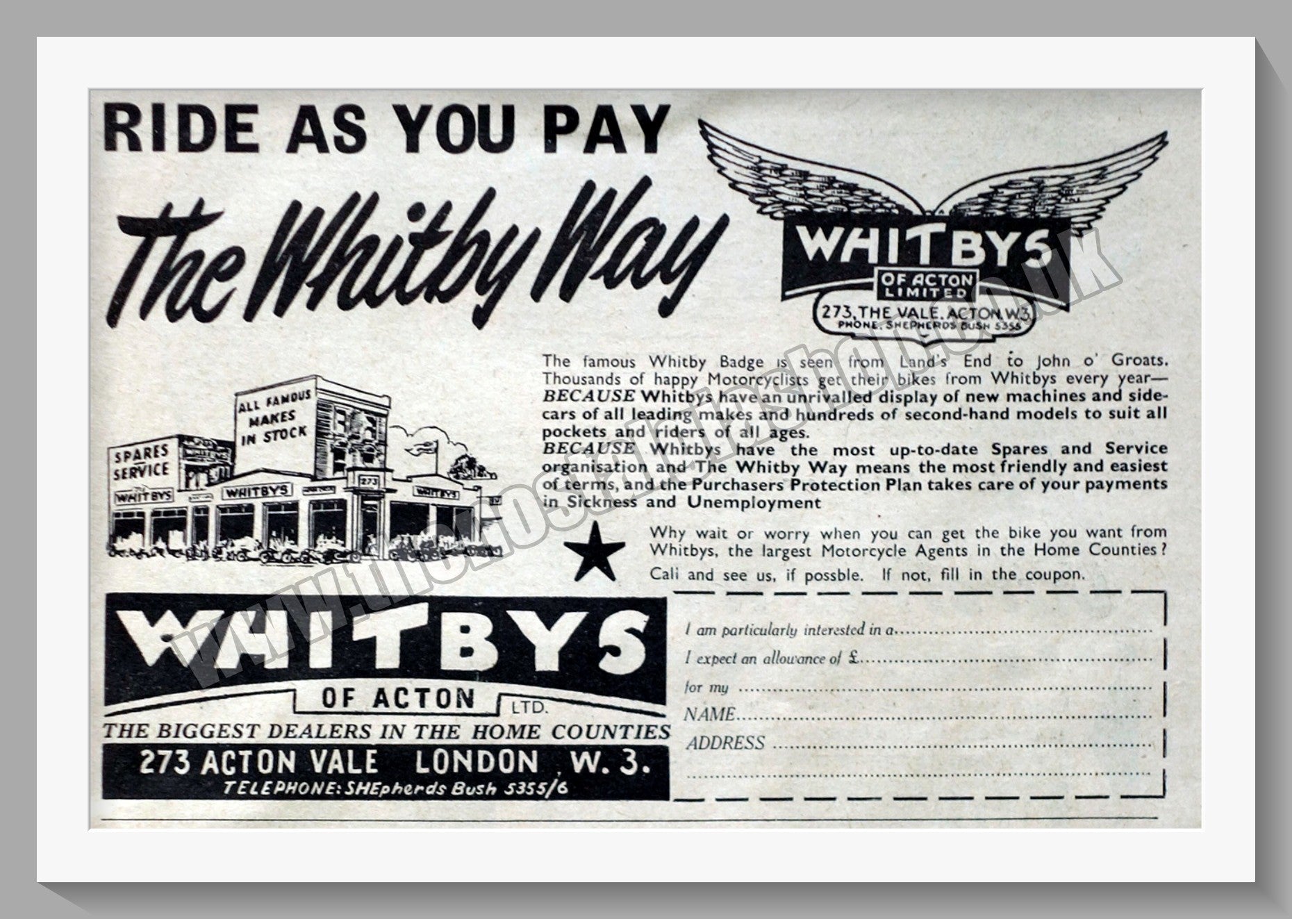 Whitbys Of Acton Motorcycle Dealer. Original Advert 1954 (ref AD57448)