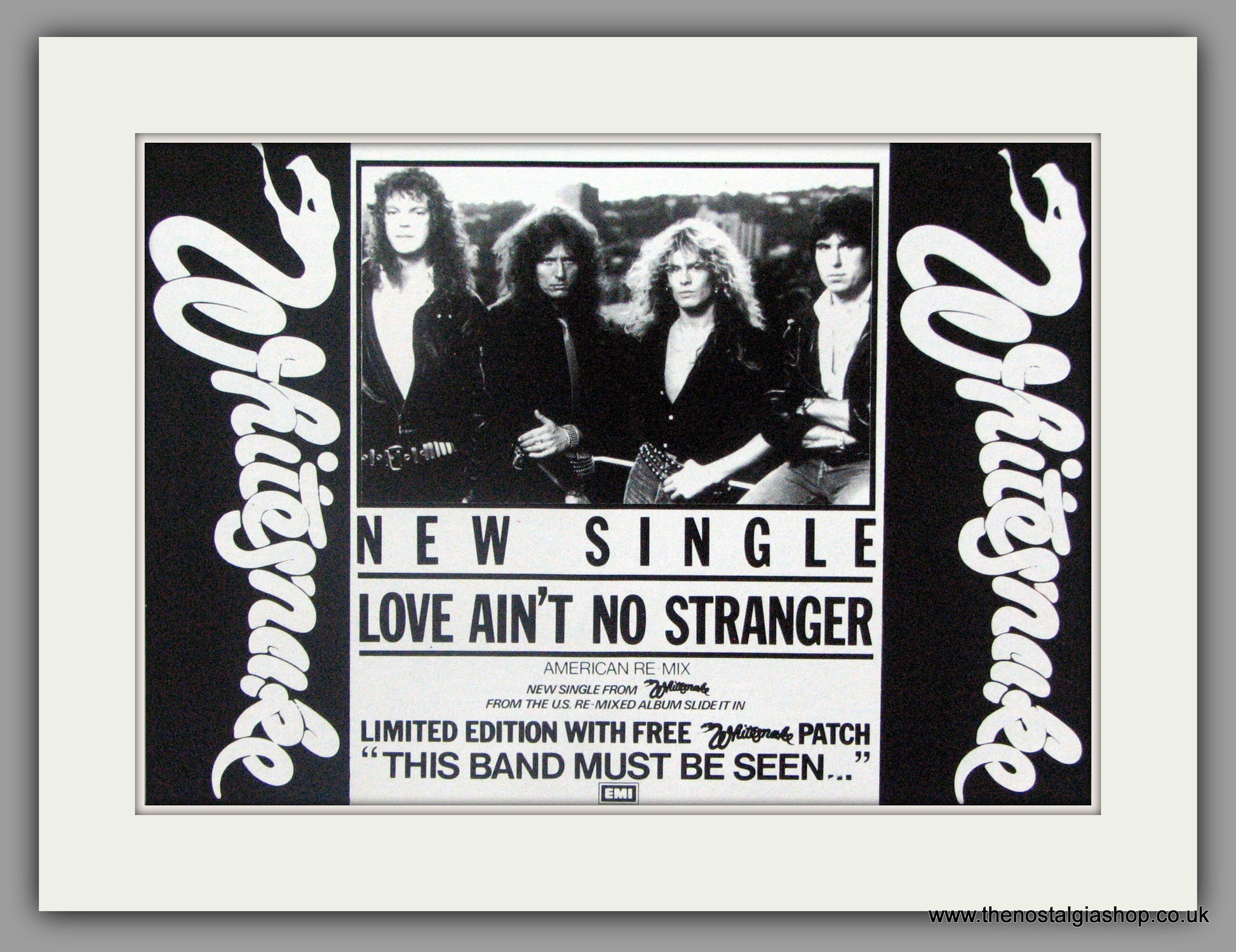 Whitesnake. Love Ain't No Stranger. Classic original advert 1985. Presented in cream bevel cut mount with backing card and clear bag. Ready to fit in 12 x 10 inch frame. Want it framing? If so, buy this then go to Frames Available Category. Click to buy on the suitable frame and we will do the rest. All our adverts, unless clearly stated are Originals from the date shown. They make excellent pieces of wall art and stunning gifts. Many are rare and hard to find and once sold, may not be replaced. Remember you are buying a piece of history. Website watermark is not on original. David Coverdale, John Sykes, Tommy Aldridge, Rudy Sarzo, Adrian Vandenberg, Steve Vai, Bernie Marsden.