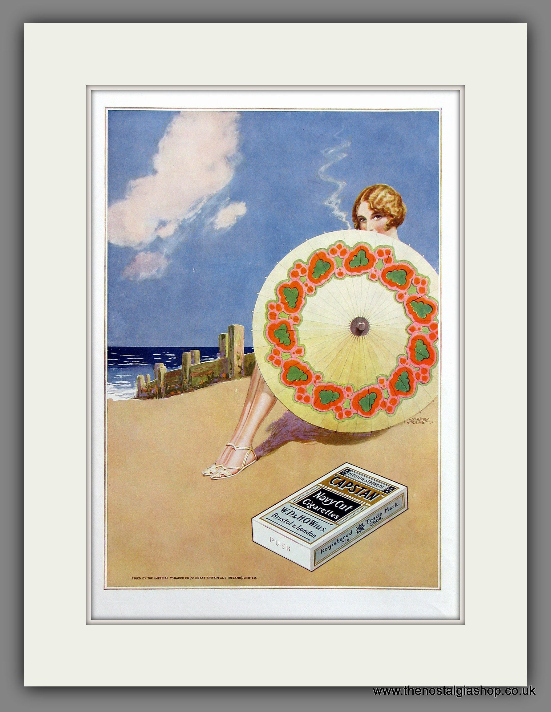Wills's Capstan Navy Cut Cigarettes. Original Vintage Advert 1930. Presented and Supplied in a 18 x 14 Inch cream mount with backing board and clear bag. Ready for Framing. All our adverts, unless clearly stated are Originals from the date shown. They make excellent pieces of wall art and stunning gifts. Many are rare and hard to find and once sold, may not be replaced. Remember you are buying a piece of history. Website watermarks are not on original. Adverts will be well packed with hardboard to keep rigid in the post.