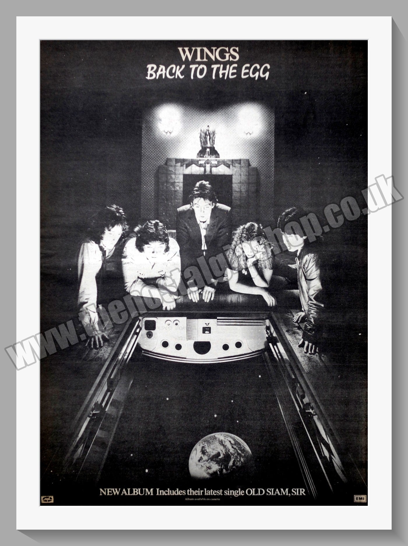 Wings. Back To The Egg. Vintage Advert. This is a large classic Original advert 1979. Presented in cream bevel cut mount with backing card and clear bag. Ready to fit in 20 x 16 inch frame. The mounted advert will be posted via courier and well packed - protected with a sheet of hardboard to keep it rigid. Any questions or inquiries, please get in touch, we are here to help! All our adverts, unless clearly stated are Originals from the date shown. They make excellent pieces of wall art and stunning gifts. Many are rare and hard to find and once sold, may not be replaced. Remember you are buying a piece of history. Website watermark is not on original. Paul McCartney, Linda McCartney, Joe English, Denny Laine, Jimmy McCulloch.