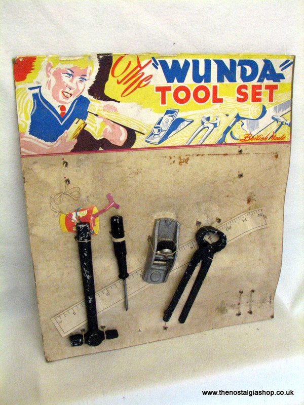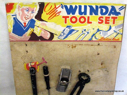 Wunda Tool Set Classic tool set from 1970s. Some tools are missing, some are present, see photos, Nice advertising board, look good on display in someones workshop.Item in good condition, still on packaging.Item will be well packed.
