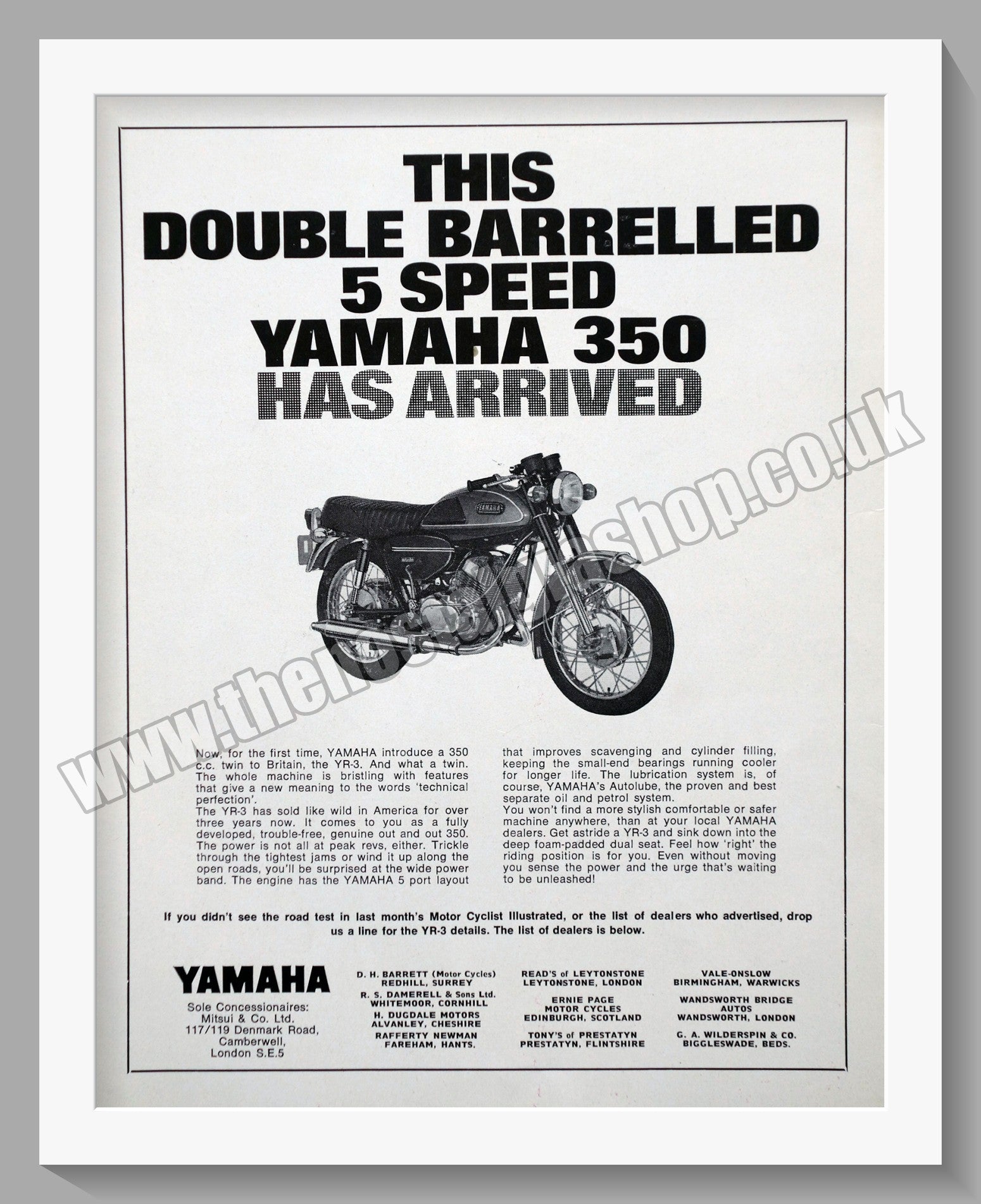 Yamaha 350 Motorcycles. Original Vintage Advert 1969. Presented and Supplied in a 14 x 11 Inch, cream bevel cut mount with backing card. Ready to frame. All our adverts, unless clearly stated are Originals from the date shown They make excellent pieces of wall art and stunning gifts. Many are rare and hard to find and once sold, may not be replaced. Remember you are buying a piece of history. Website watermark is not on original. Yamaha Motorbikes, Vintage Yamaha, Yamaha Motorcycles.