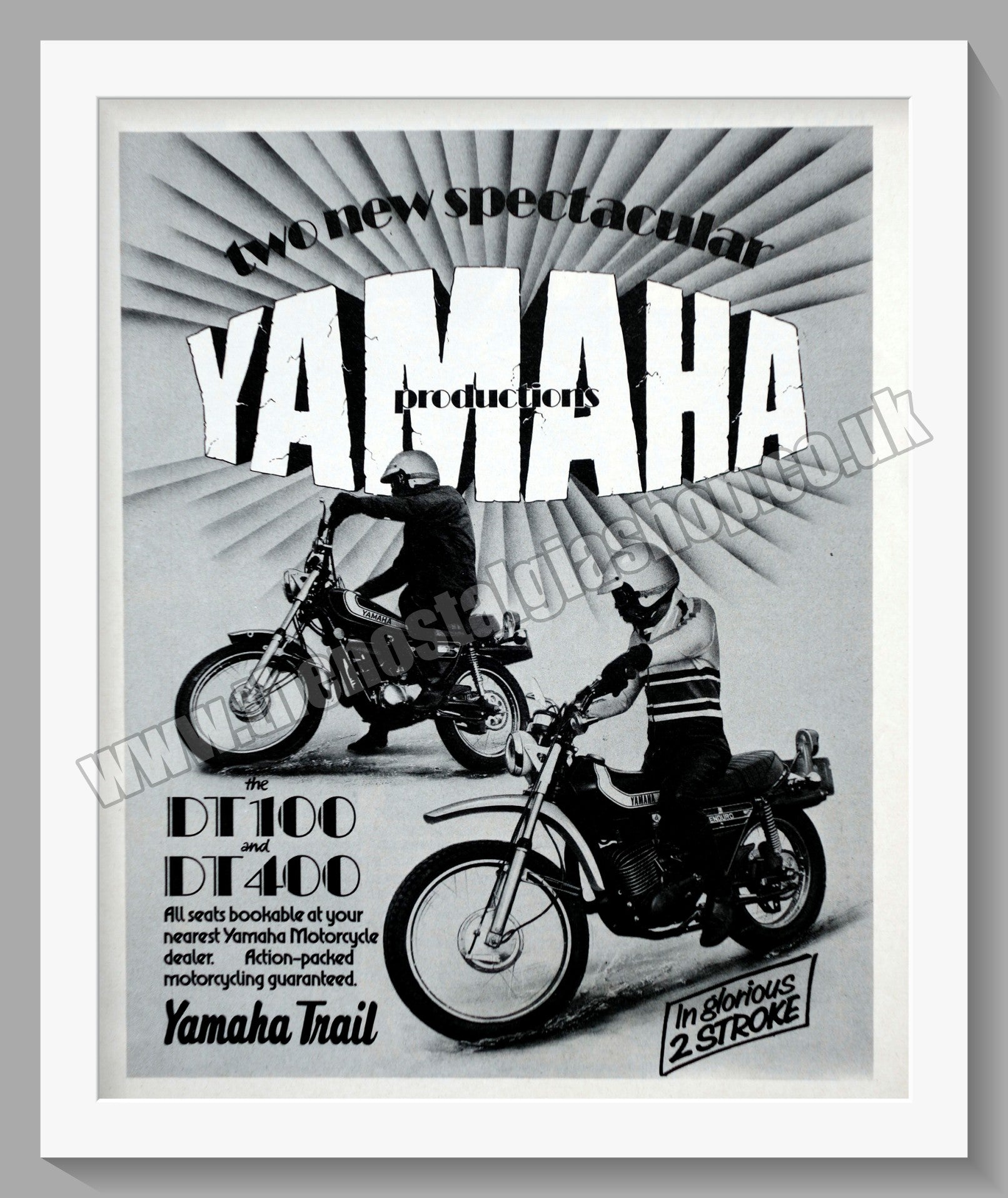 Yamaha DT 100 DT 400 Trail Motorcycles. Original Vintage Advert 1976. Presented and Supplied in a 14 x 11 Inch, cream bevel cut mount with backing card. Ready to frame. All our adverts, unless clearly stated are Originals from the date shown They make excellent pieces of wall art and stunning gifts. Many are rare and hard to find and once sold, may not be replaced. Remember you are buying a piece of history. Website watermark is not on original. Yamaha Motorbikes, Vintage Yamaha, Yamaha Motorcycles.