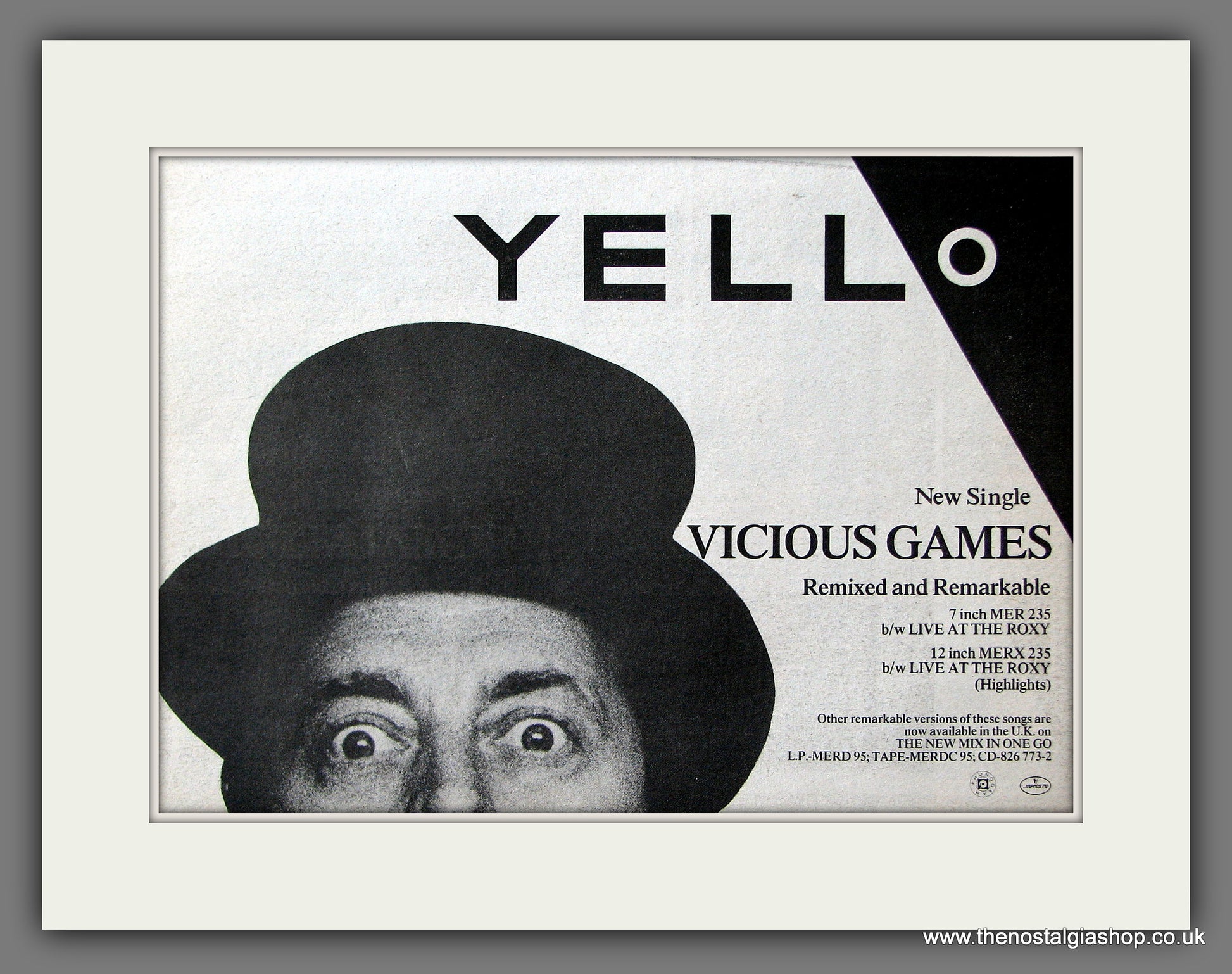 Yello. Vicious Games. Classic Original advert 1986. It is presented in cream bevel cut mount with backing card. Ready to fit in 14 x 11 inch frame. Want it framing? If so, buy these then go to Frames Available Category. Click to buy on the suitable frame and we will do the rest. All our adverts, unless clearly stated are Originals from the date shown. They make excellent pieces of wall art and stunning gifts. Many are rare and hard to find and once sold, may not be replaced. Remember you are buying a piece of history. Website watermark is not on original.
