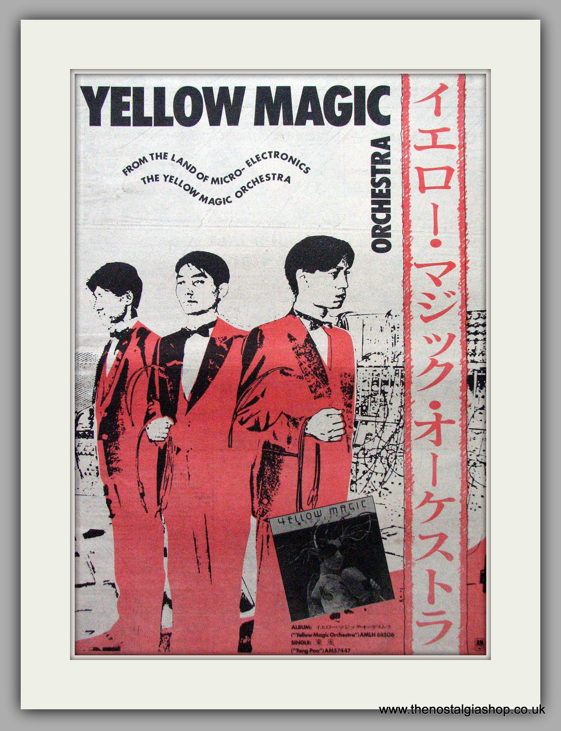 Yellow Magic Orchestra. Vintage Advert. large Original Advert 1979. Presented and Supplied in a 20 x 16 Inch, cream bevel cut mount with backing card and clear bag. Ready to frame. The mounted advert will be posted via courier and well packed - protected with a sheet of hardboard to keep it rigid. Any questions or inquiries, please get in touch, we are here to help! All our adverts, unless clearly stated are Originals from the date shown. They make excellent pieces of wall art and stunning gifts. Many are rare and hard to find and once sold, may not be replaced. Remember you are buying a piece of history. Website watermark is not on original .